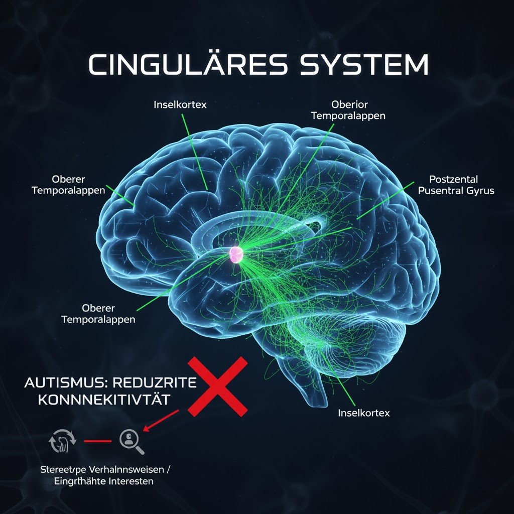 Das cinguläre System – bestehend aus dem anterioren, mittleren und posterioren cingulären Kortex – fungiert als neurobiologisches Knotenzentrum, in dem kognitive Kontrolle, emotionale Verarbeitung und autonome Regulation zusammenlaufen. Die Forschung der letzten Jahre offenbart bemerkenswerte Befunde: Strukturelle und funktionelle Abnormalitäten in diesem System finden sich konsistent bei ADHS, Autismus-Spektrum-Störungen und Angststörungen.