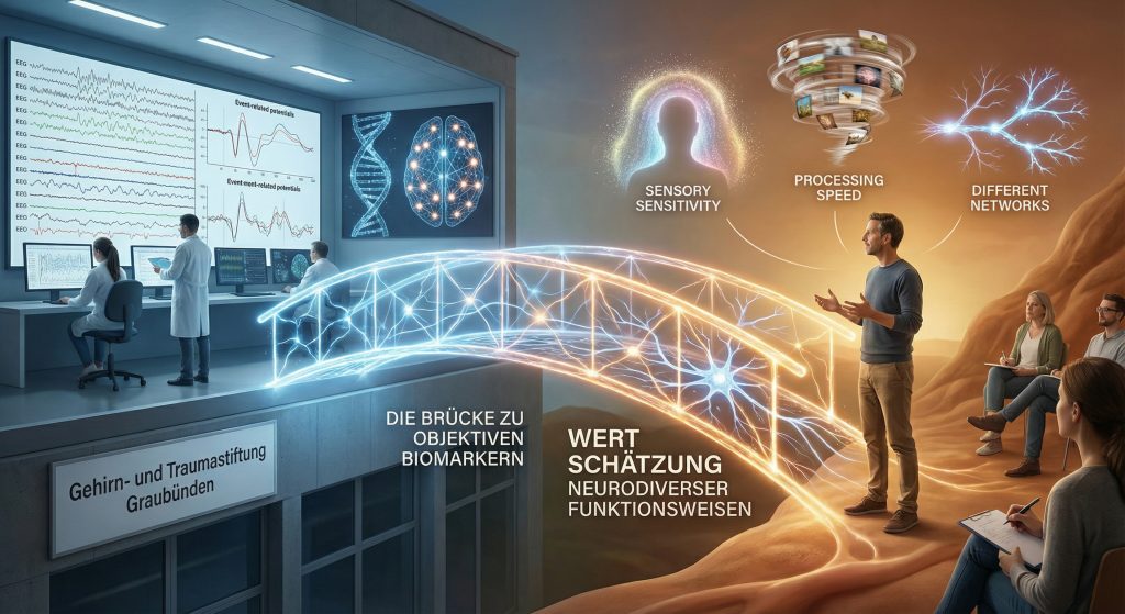 Diese Haltung korrespondiert perfekt mit dem Ansatz der Gehirn- und Traumastiftung Graubünden. Die Integration objektiver Biomarker in die psychiatrische Diagnostik dient nicht der Pathologisierung, sondern der Wertschätzung neurodiverser Funktionsweisen.